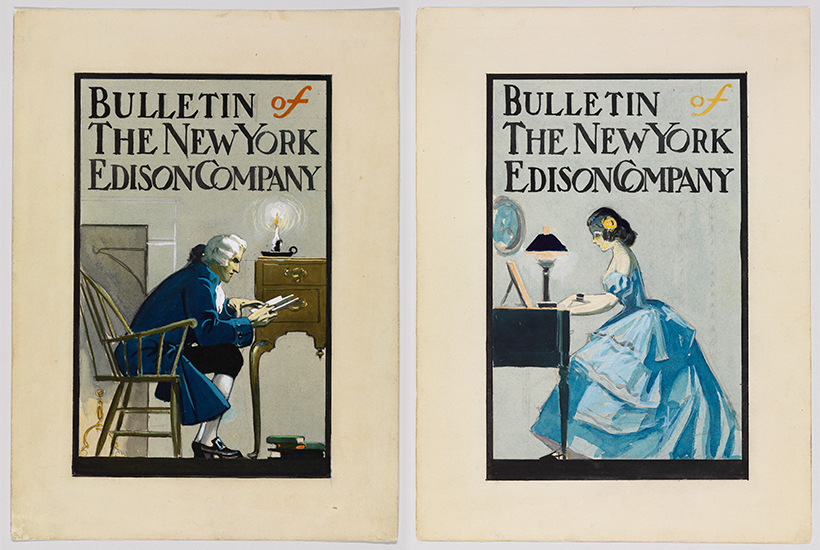 ▲ 〈뉴욕 에디슨 회사의 회보 표지 삽화〉, 1906–07, 종이에 펜과 잉크, 투명, 불투명 수채, 연필, 호퍼는 생계유지를 위해 일러스트 디자이너로 살아가며 돈을 벌어야 했다. ⓒ서울시립미술관