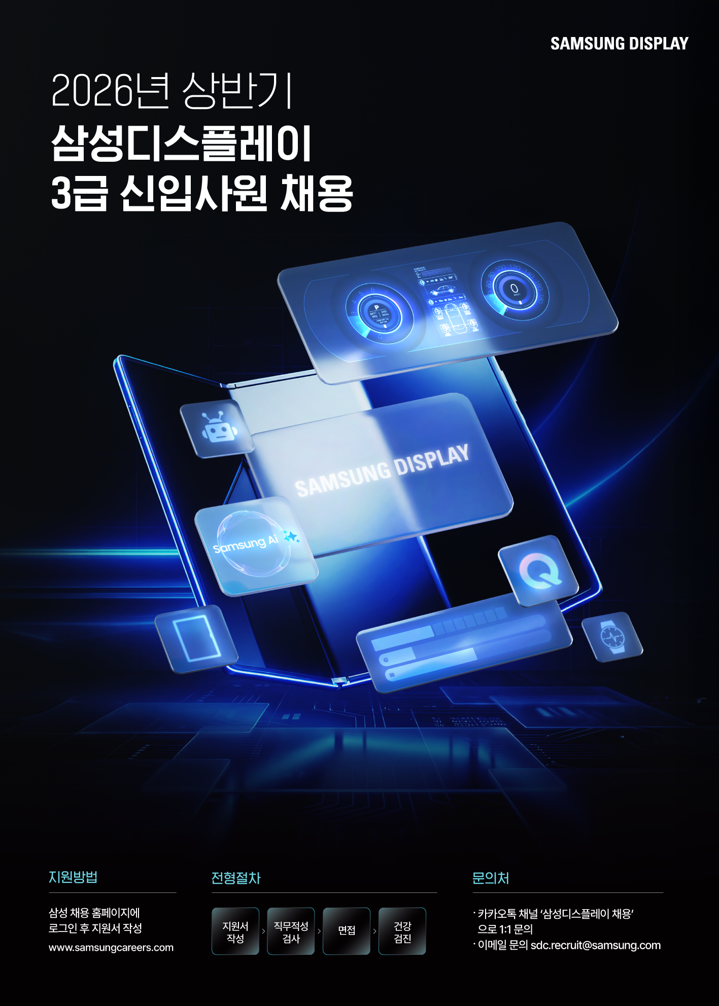 삼성디스플레이가 2026년 상반기 3급 신입사원을 선발합니다.