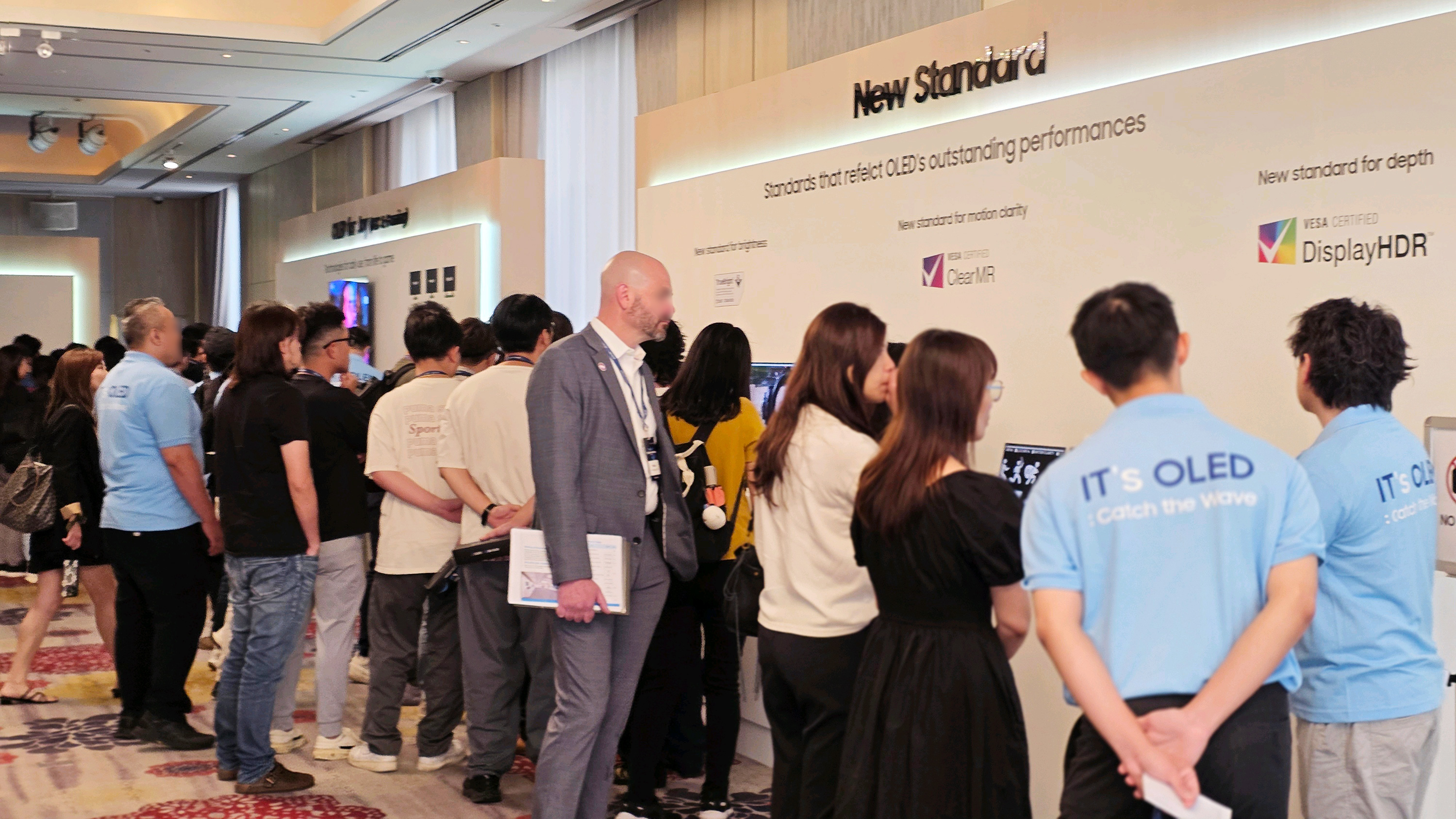 25일 타이베이에서 열린 글로벌 파트너십 행사 '삼성 OLED IT 서밋 2025'에서 참석자들이 전시 제품을 살펴보는 모습
