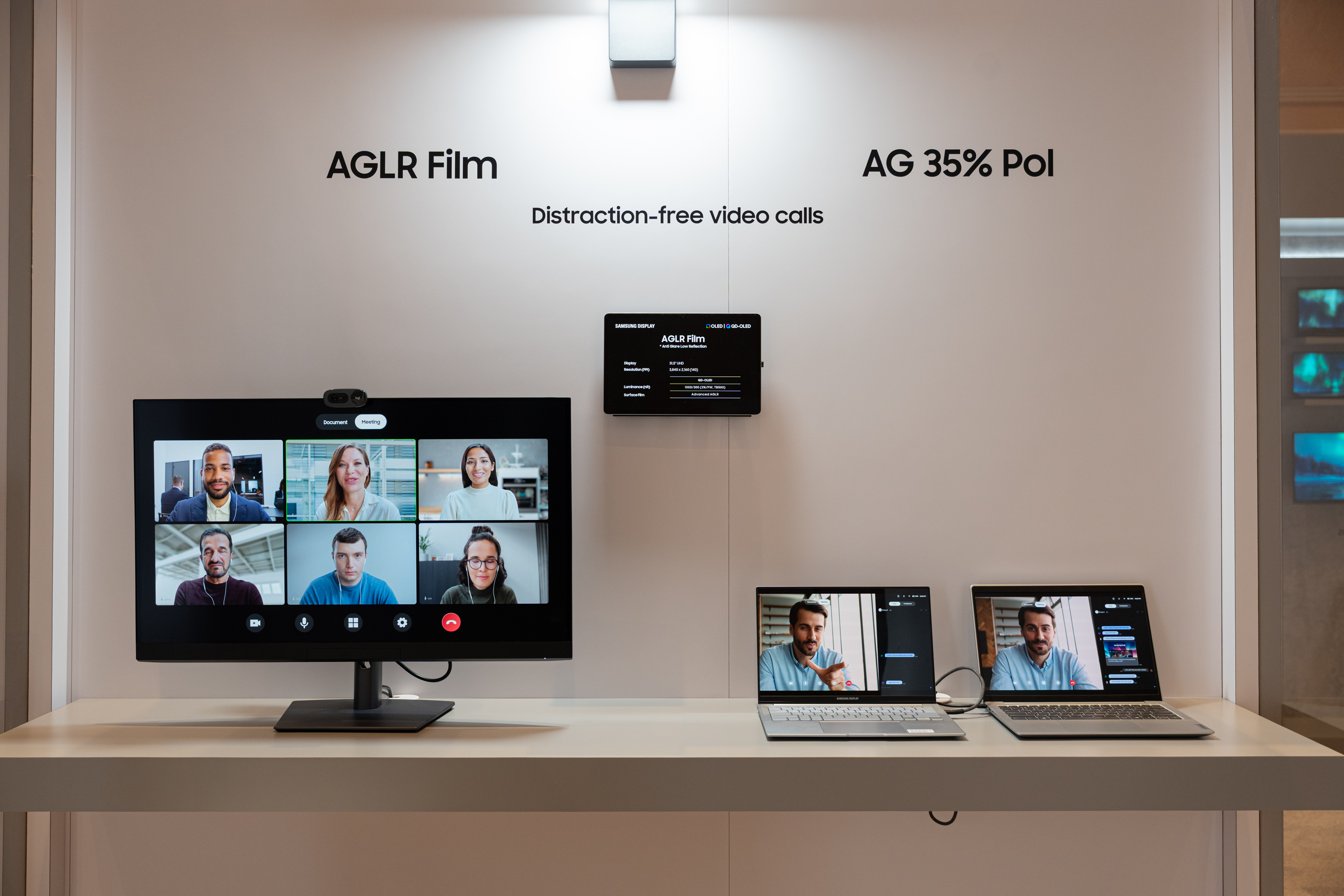 삼성디스플레이가 5일(현지시간) 미국 라스베이거스 앙코르 앳 윈 호텔에서 'CES 2026' 미디어 초청 행사를 열고 소개한 노트북 및 모니터용 저광택(AG) 저반사(LR) 기술. 이 기술은 상대방과 화상통화할 때 자신의 모습이 디스플레이에 비춰 보이는 문제를 최소화할 수 있다.