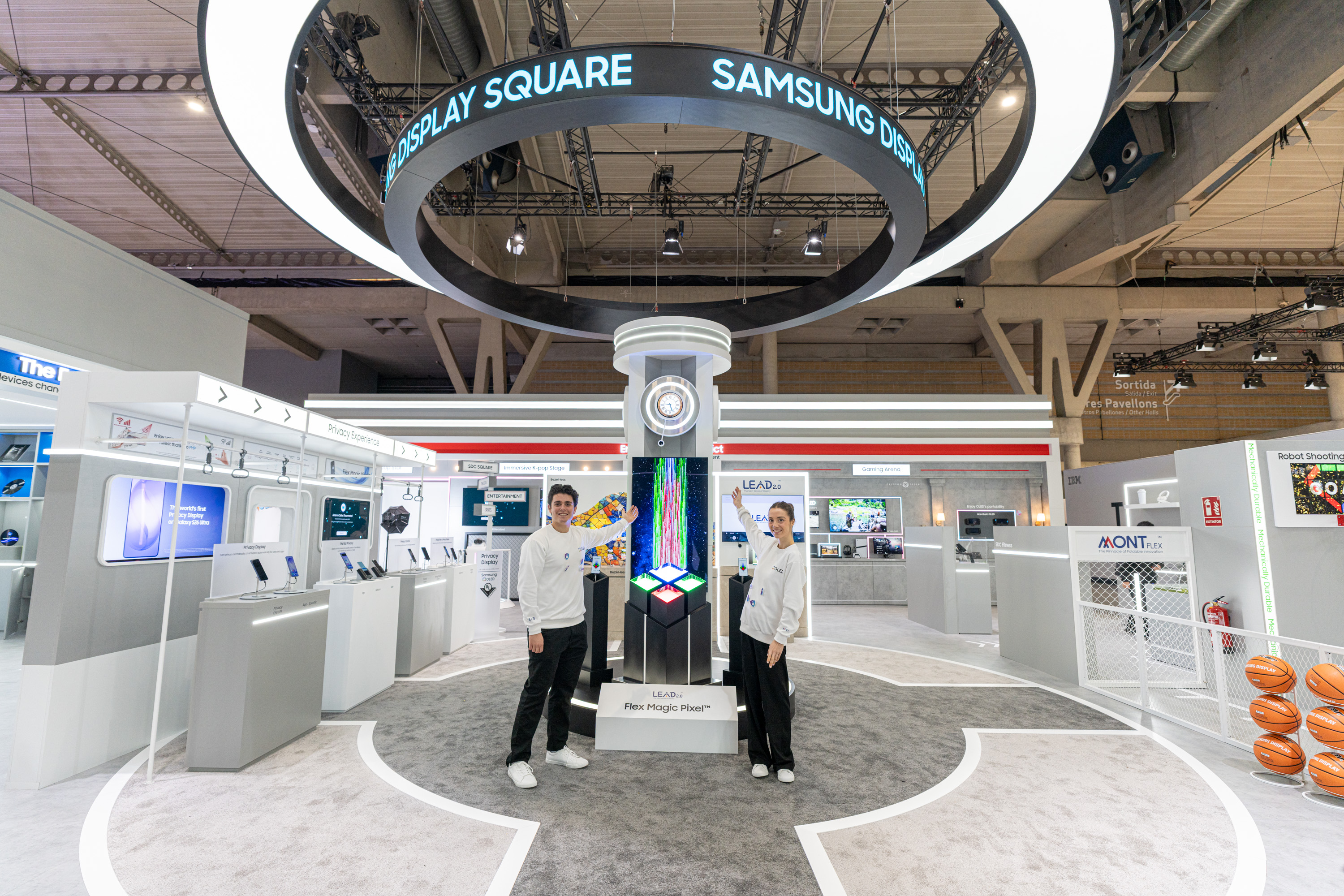 삼성디스플레이가 2~5일까지 바르셀로나에서 열리는 'MWC26'에 4년 연속 참가했다. 사진은 부스 입구에서 포즈를 취하고 있는 모델들의 모습