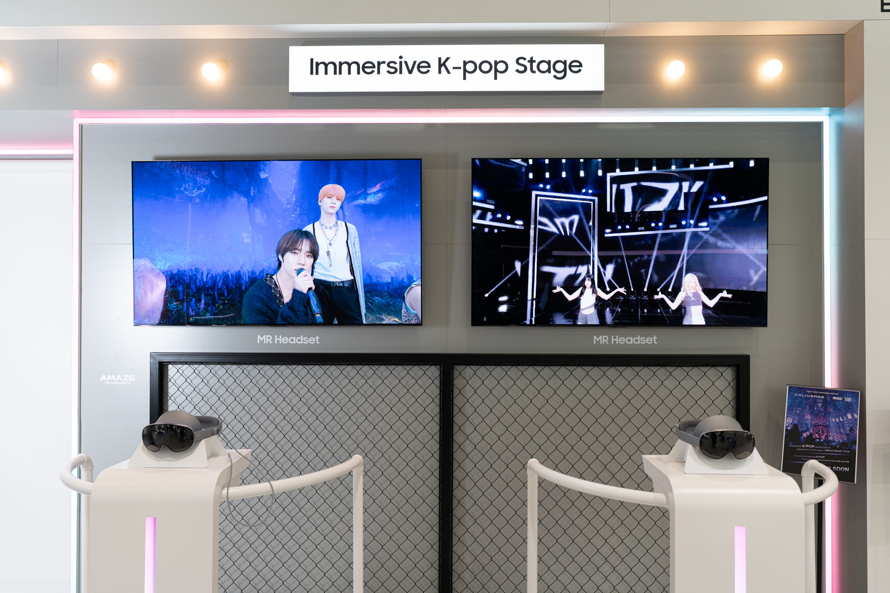 삼성디스플레이가 'MWC26'에서 5,000 PPI RGB 올레도스를 탑재한 MR 데모 제품으로 K팝 아이돌의 공연 콘텐츠를 감상할 수 있는 이벤트를 진행한다